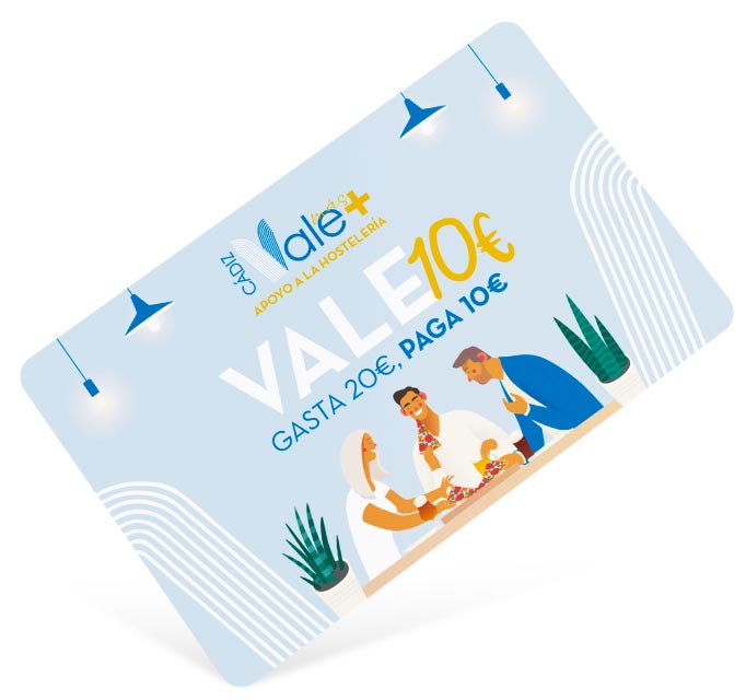 Cádiz Vale Más es un programa para fomentar del consumo en la hostelería con el fin de paliar, en parte, las consecuencias económicas de la crisis del coronavirus (COVID-19) en este sector. Para ello se ponen en marcha sistema de bonos consumo, que ofrecerá a la ciudadanía un total de 141.530 VALES DESCUENTO por valor de 10 € cada uno, que podrán ser canjeados en los establecimientos de hostelería adheridos a la campaña, en consumiciones iguales o superiores a 20 €.