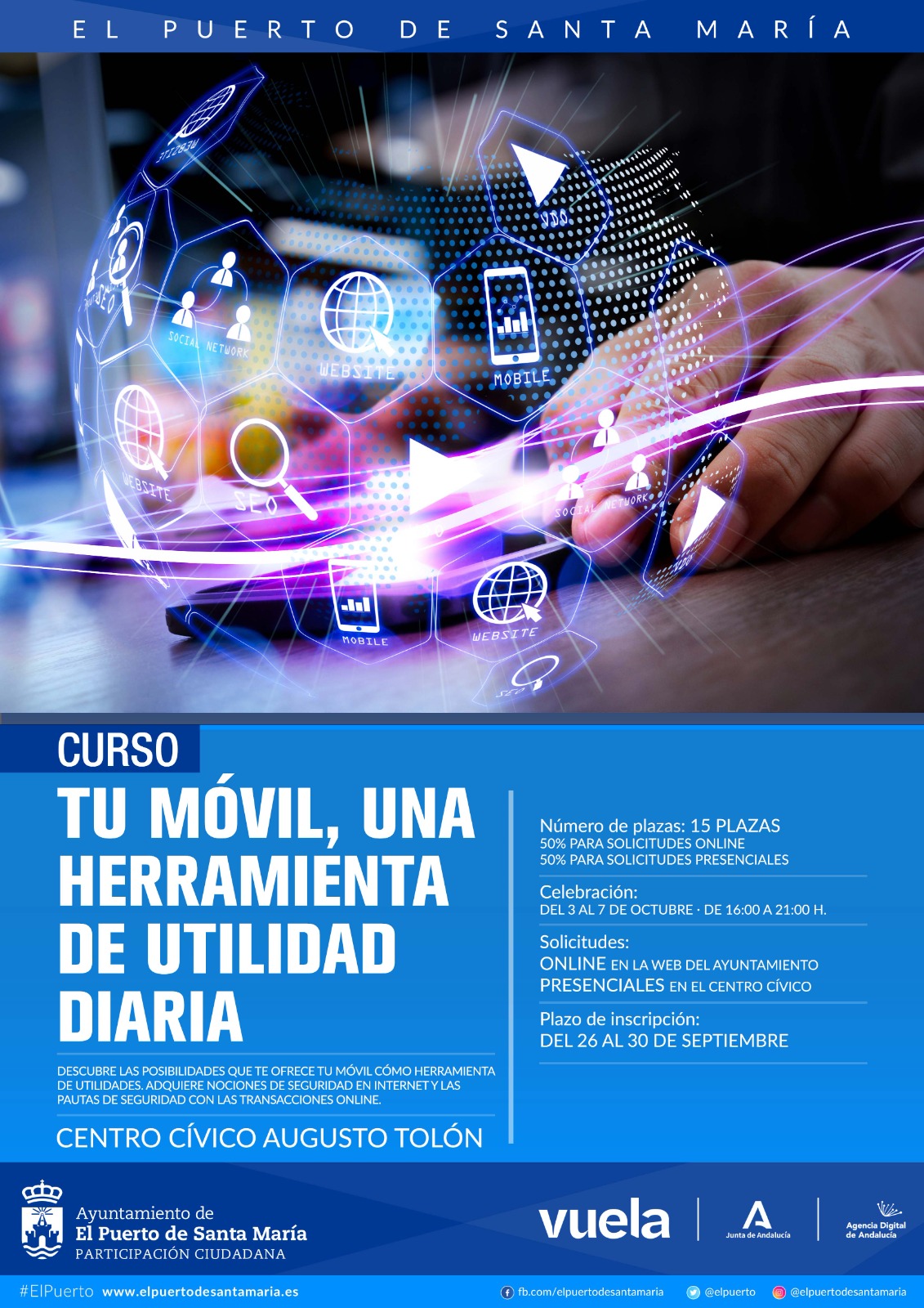 Online en la web municipal y presenciales en el Centro Cívico.