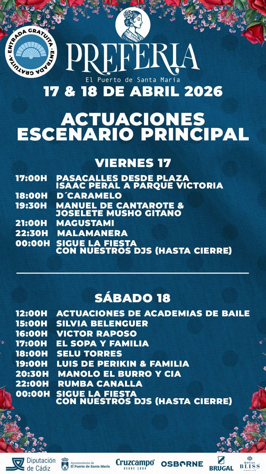 El Puerto de Santa María se prepara para vivir un intenso fin de semana festivo con la celebración de la "Preferia 2026", que tendrá lugar los próximos viernes 17 y sábado 18 de abril en el Parque de la Victoria.
