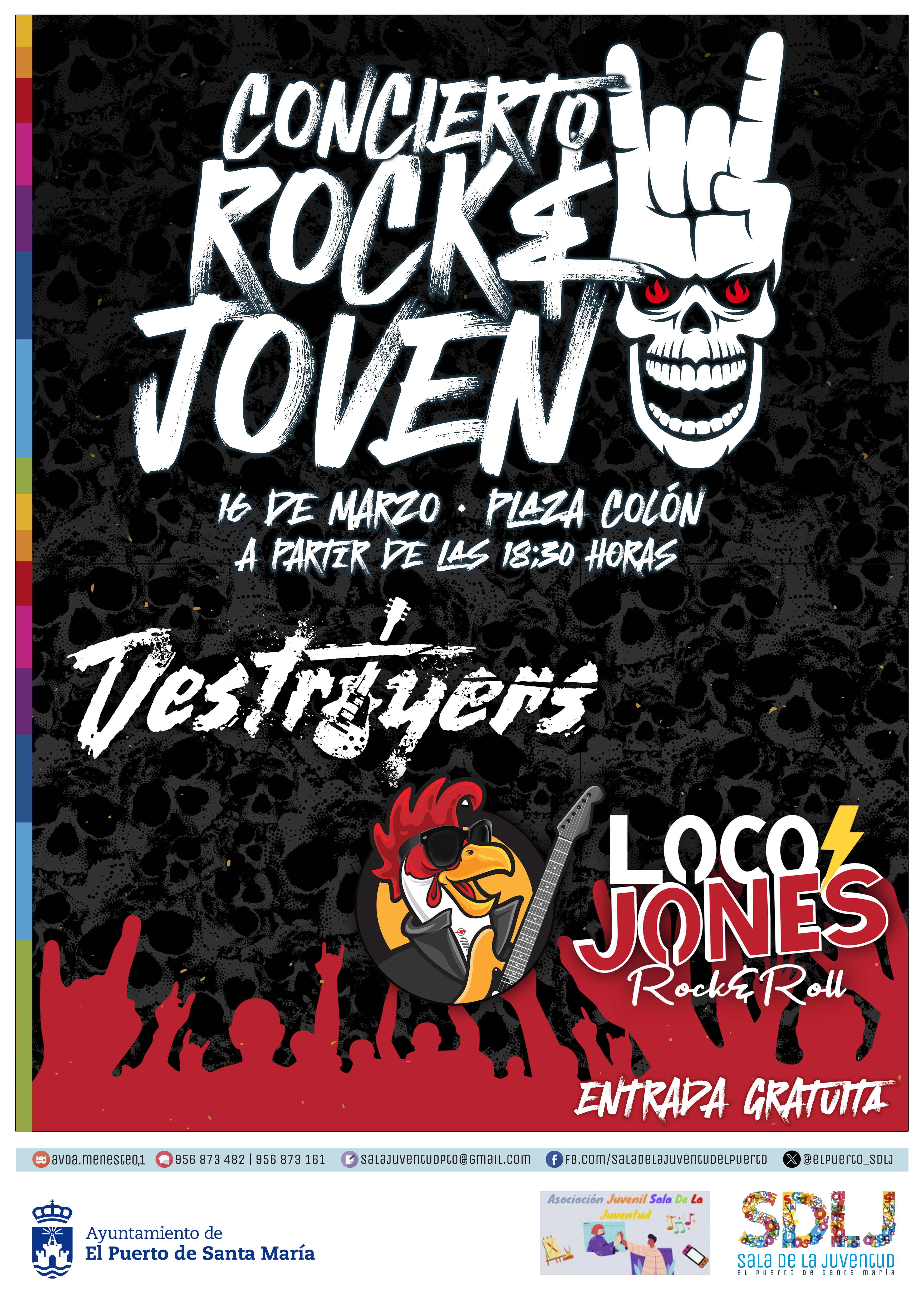 El concejal de Juventud, José Ignacio González Nieto, anuncia que la Plaza Colón acoge este sábado 16 un interesante concierto de rock joven con una propuesta doble: Destroyers y Loco Jones. La iniciativa, que organiza el área municipal, es de entrada gratuita y comenzará a las 18:30 horas.