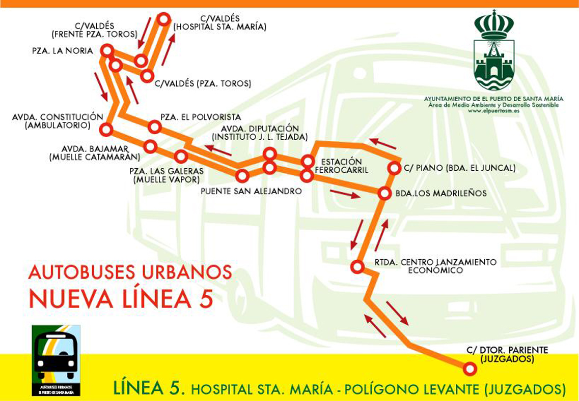 El Área de Medio Ambiente y Desarrollo Sostenible del Ayuntamiento de El Puerto de Santa María presenta la nueva Línea 5 de Autobuses Urbanos que comunicará el Hospital de Santa María y los Juzgados situados en el Polígono de Levante.