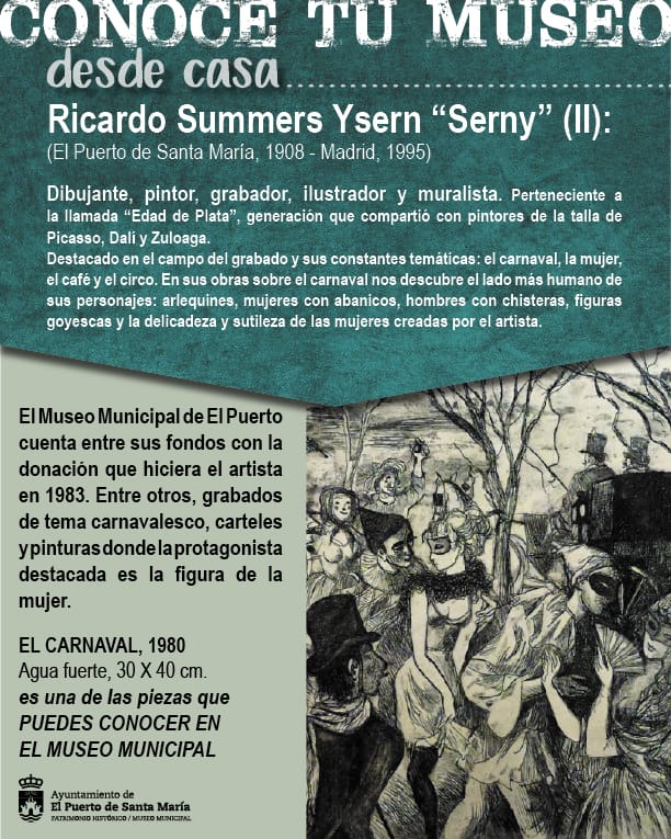 Serny, pesé a marchar muy joven de su ciudad natal, nunca se desvinculó de El Puerto y quiso que parte de su obra permaneciera en la ciudad. En 1983 donó al Museo Municipal una carpeta con 12 grabados de temas carnavalescos, pinturas y el original del cartel de feria de 1992.