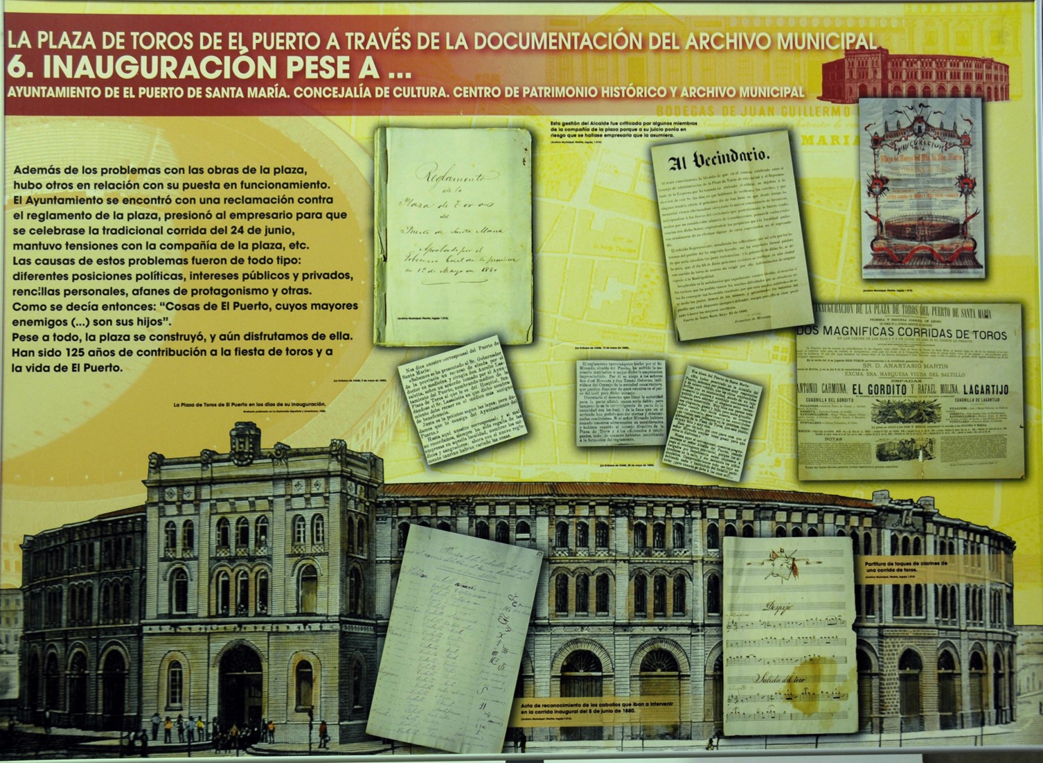 Una mítica plaza de toros por la que han pasado los mejores diestros de la historia del toreo, entre ellos, Joselito “El Gallo”, quien en 1916 nos dejó su ya histórica frase: "QUIEN NO HA VISTO TOROS EN EL PUERTO, NO SABE LO QUE ES UN DÍA DE TOROS", en recuerdo a los buenos toreros que por El Puerto habían pasado y dejado inolvidables tardes de toros. Una frase inmortalizada en un mosaico de azulejos situado en el pasillo de entrada.